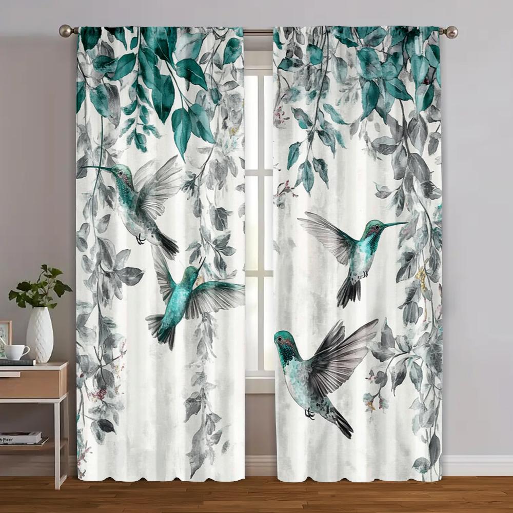 2pcs Minimalist Curtains 2D Print Colorful Hummingbird Versatile Polyester (without Rod) Stuff Clearance Use for Living Room