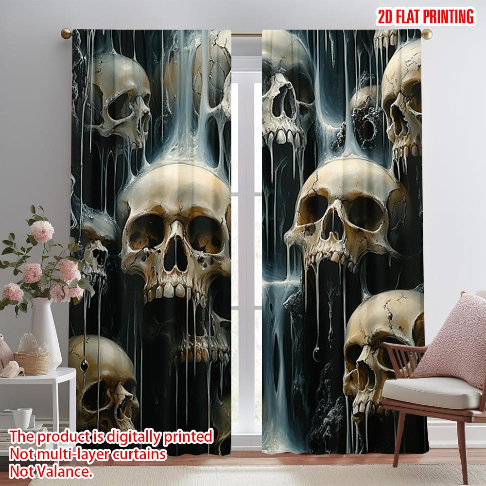 2pcs 2D Plane Printing Pattern Curtains Skull Polyester Woven (without Rod) Outdoor Decorations for Study Living Room Kitchen