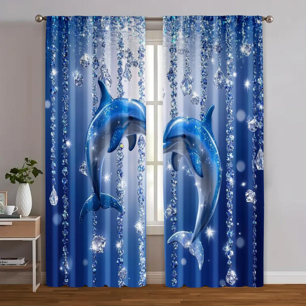 2pcs Curtains Digital Printed 2D Print Blue Dolphin Print Machine Washable Polyester (without Rod) Art Deco Festive Use for