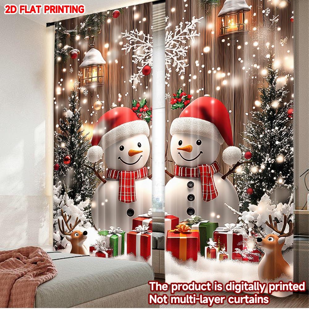 2D Flat Printing 2pcs Christmas Curtains Christmas Snowmen and Gifts Scopic and Stylish 100% Polyester Fiber Holiday Decorations