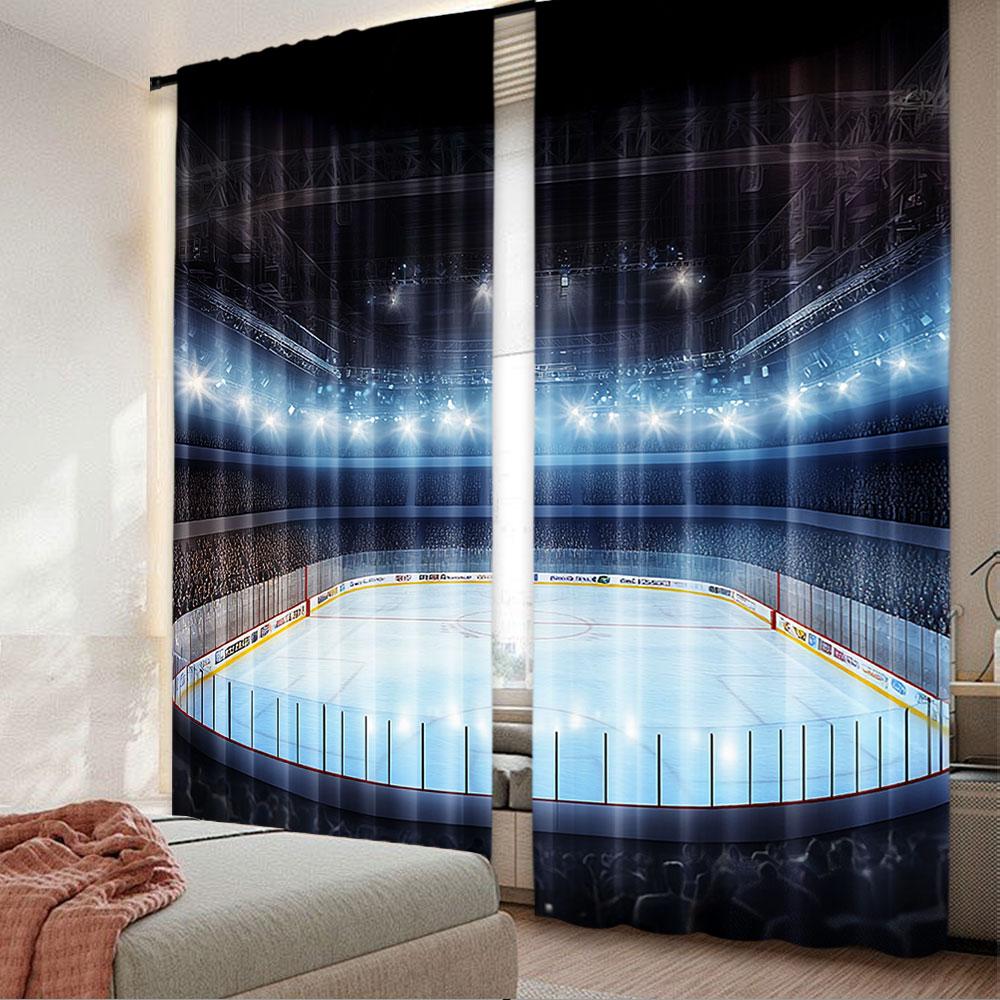 2Pcs Hockey Curtains A Sports Arena Full Of People Fans Audience Tournament Championship Match Living Room Bedroom Window Drapes
