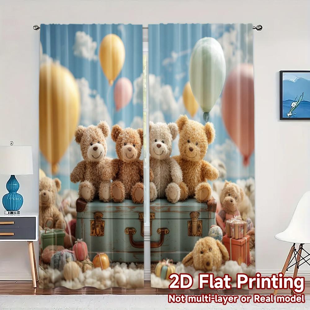 2pcs 2D FLAT PRINTING Curtains (Without Rod) Teddy Trio Chic Curtain Cloth Prints Light Filtering Curtains Thermal Insulation