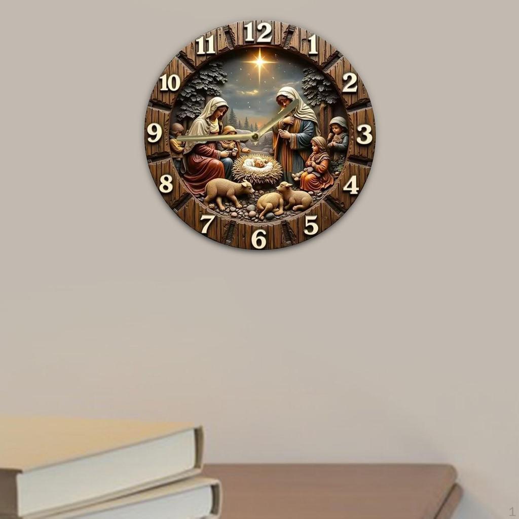 - 【Religious Design】This Wood Wall Clock features Birth of Jesu design, ideal for living rooms and bedrooms décor
