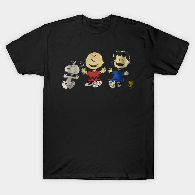 Men Black Print T-shirt Vintage 90S Snoopy Charley Brown And Friends Peanu No-Cut Transfer Paper Print Cotton Tshirt