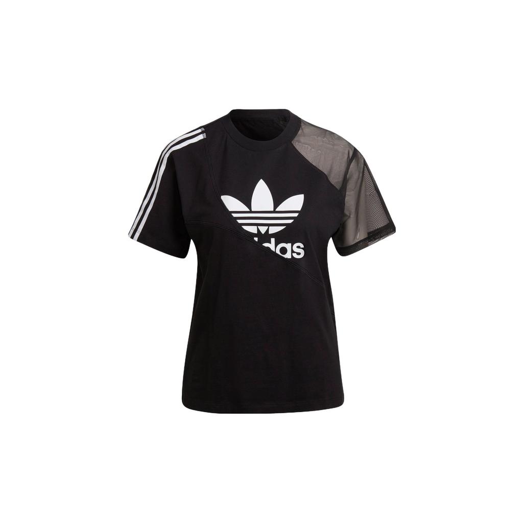 Adidas Originals Trefoil Large Logo Striped Print Spliced Casual Crew Neck Short Sleeve Drop Shoulder T-Shirt Women T-Shirt Black HC7039