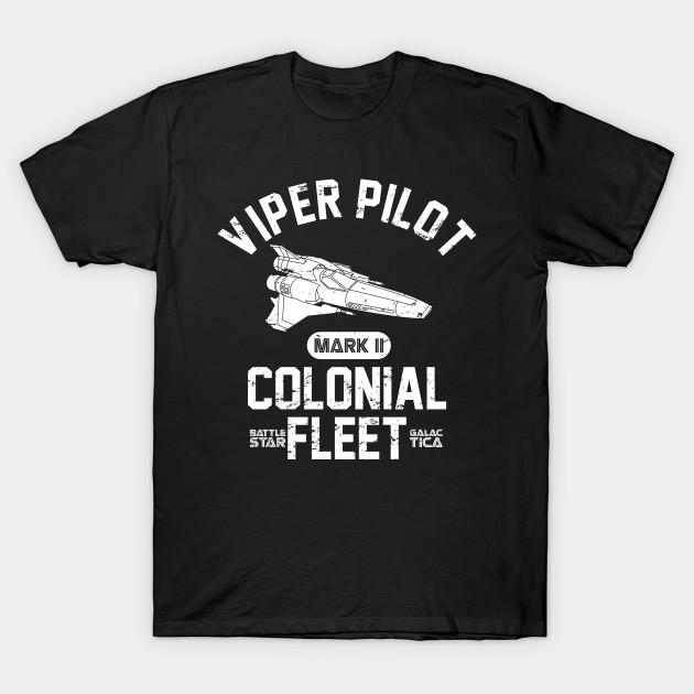 Men Black Print T-shirt Battlestar Galactica Viper Pilot Colonial Fleet No-Cut Transfer Paper Print Cotton Tshirt