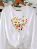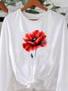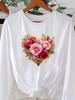 (Asian Size) O-neck Women T Shirt Tee Lady Watercolor Flower Trend Printed Female Clothing Casual Fashion Top Long Sleeve Graphic T-shirts