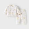 This cozy two-piece homewear set is perfect for keeping your little one comfortable during the cooler autumn and winter months. Crafted from soft, breathable cotton, the set features a convenient front-opening design for easy dressing and undressing. The long-sleeve top adds an extra layer of warmth, ensuring your baby stays snug whether they're napping or playing. Ideal for everyday wear, this set combines functionality with a gentle, soothing touch against your baby's skin.