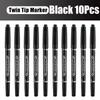 10Pcs New Oily Waterproof Permanent Marker Black Ink Graffiti Twin Tip Marker Fine Thick Point Drawing Pens School Supplies