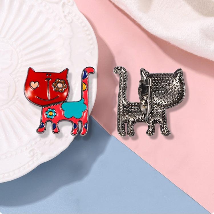 Cartoon Personality Painting Cat Brooch Alloy Drip Animal Brooch Small Pin Women's Clothing Accessories
