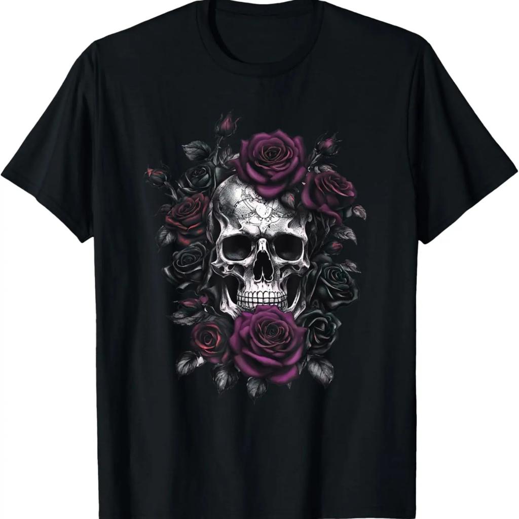 Skeleton Metalhead Skulls and Roses Metal Rock Purple Roses T-Shirt