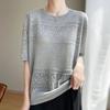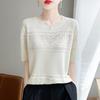 Summer Updated Ice Silk Linen Hollow Knitted Short-sleeved Womens Round Neck One Tone T Temperament Versatile Relaxed Fit Thin Blouse