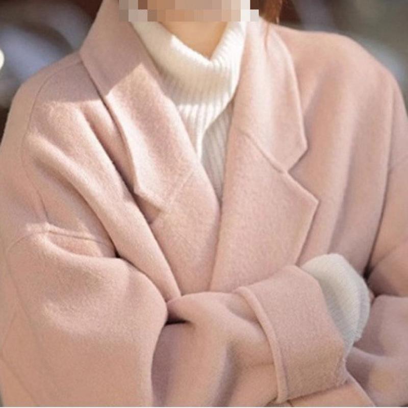 Pink Double-sided Woolen Coat Autumn and Winter Latest Korean Style Comfortable Fit Mid-length Woolen Coat for Women