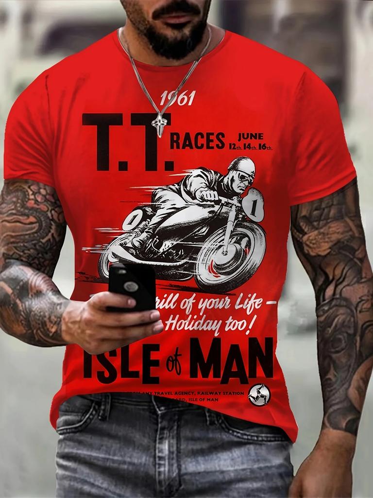 2024 T-Shirt For Men's Motorcycle Printed 3D Tshirts Summer Oversized T-Shirt Men's Short Sleeve Tops Men's Clothing Streetwear