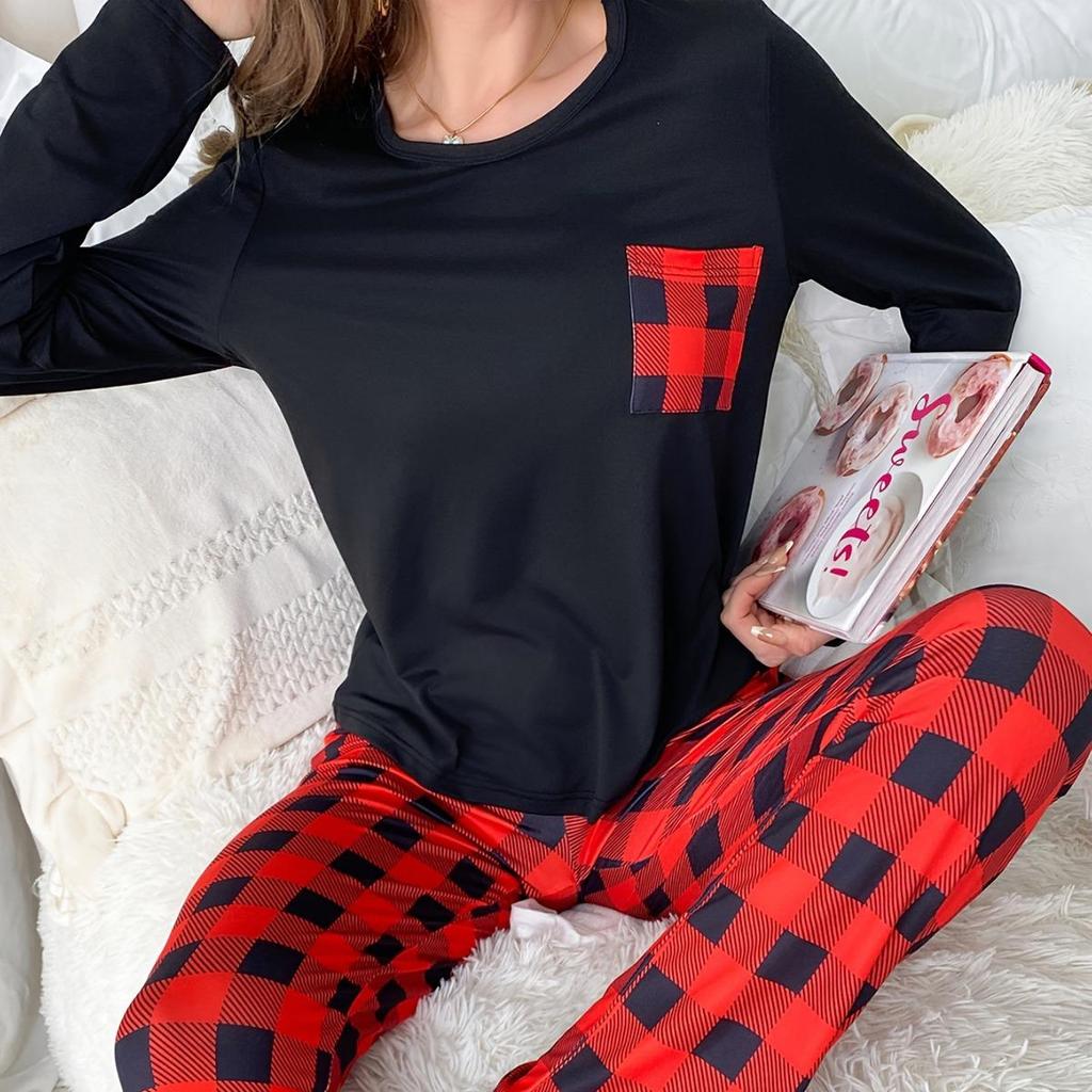 Experience ultimate comfort and style with this women's pajama set, designed in a European and American style. Made from luxurious artificial silk material, the set features long sleeves and is complemented by a plaid pocket detail for a chic touch. The fabric is enriched with milk silk, ensuring a soft and cozy feel throughout the night. Perfect for lounging or sleeping, this pajama set combines elegance and comfort effortlessly.