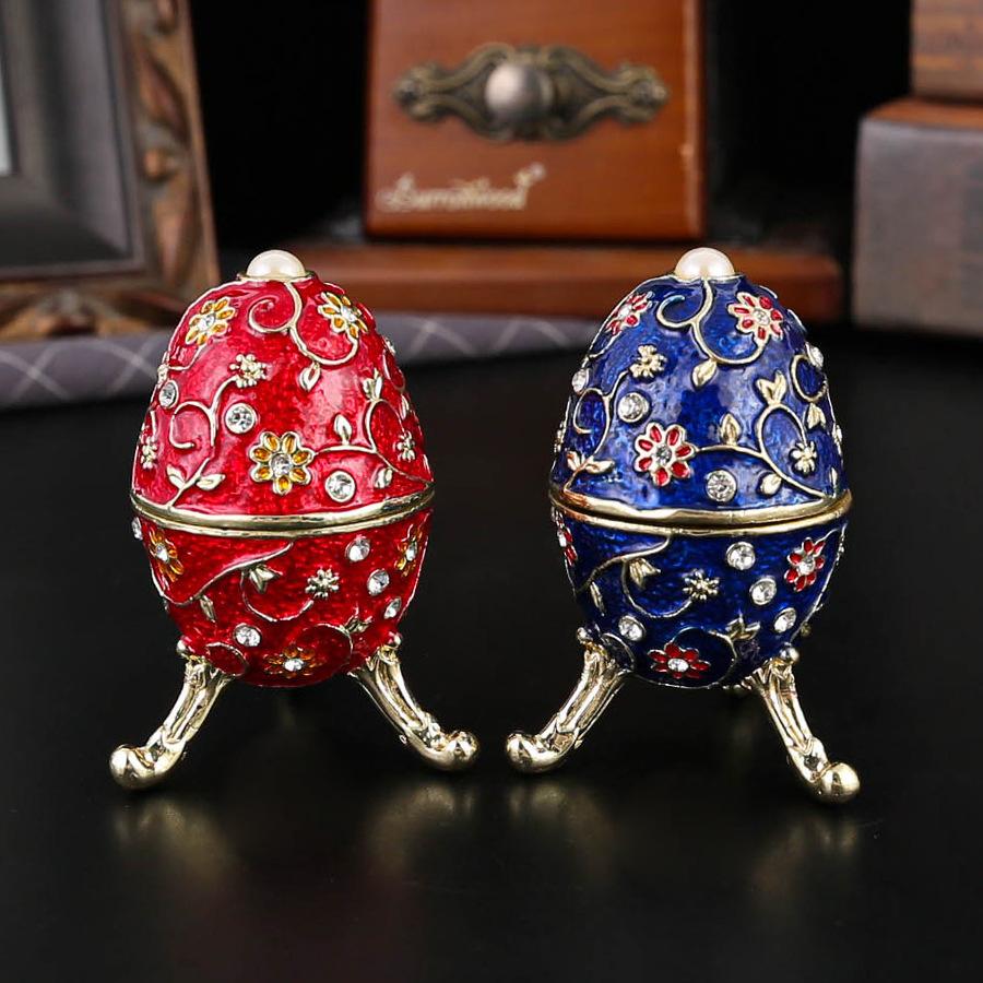 European Retro Diamond-encrusted Egg-shaped Jewelry Box Metal Enamel Color Creative Flip Ring Necklace Earrings Storage