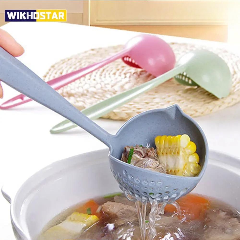 The 2 In 1 Kitchen Spoon Spoon Long Handle Plastic Colander Filter Tableware Hot Pot Spoon