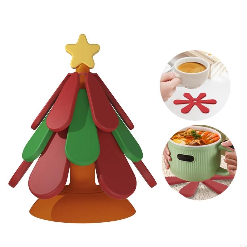 Hot Dish Trivets Silicone Tree Coasters For Christmas Decoration Heat Resistant And Easy To Clean Dining Table Placemats