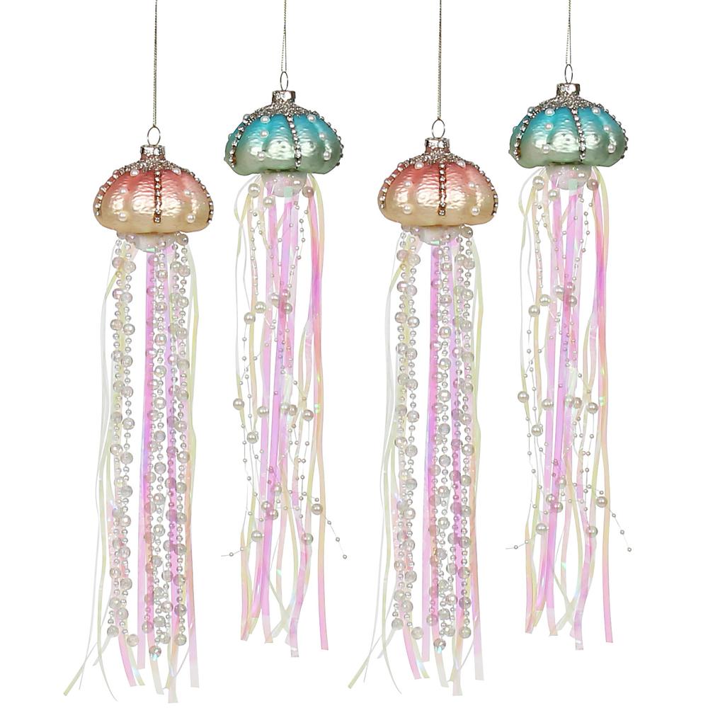 Glass Pearl Jellyfish Pendant Beach Christmas Decoration Christmas Tree Decoration Pendant Four Sets Hang Up