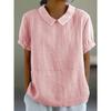 Summer Casual Blouse Peter Pan Collar Cotton Loose Ladies Shirt Short Sleeve Solid Color Breathable Womens Tops