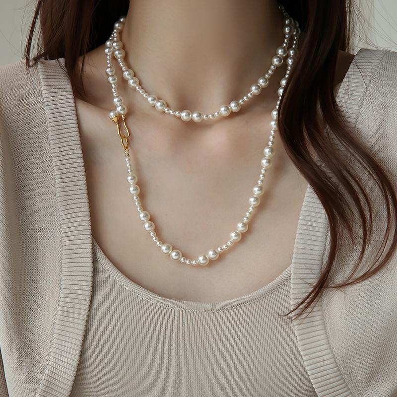 Korean Temperament Gentle Can Be Stacked Geometric Pearl Necklace Accessories Women's Sweater Chain Accessories