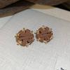 Autumn and Winter Retro Maillard Coffee Color Resin Tiger's Eye Earrings, Ear Buckles, Niche Earrings for Women
