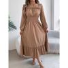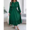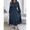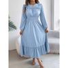 Autumn and Winter Casual Elegant Solid Color Round Neck Long Sleeved Waist Cinched Lotus Leaf Edge Dress Women Clothing
