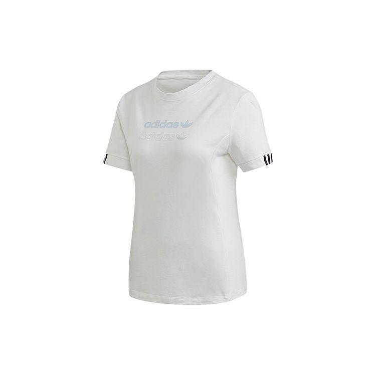 Adidas Originals Light Blue Logo Sports Short Sleeve T-Shirt Women Tops White FM2488