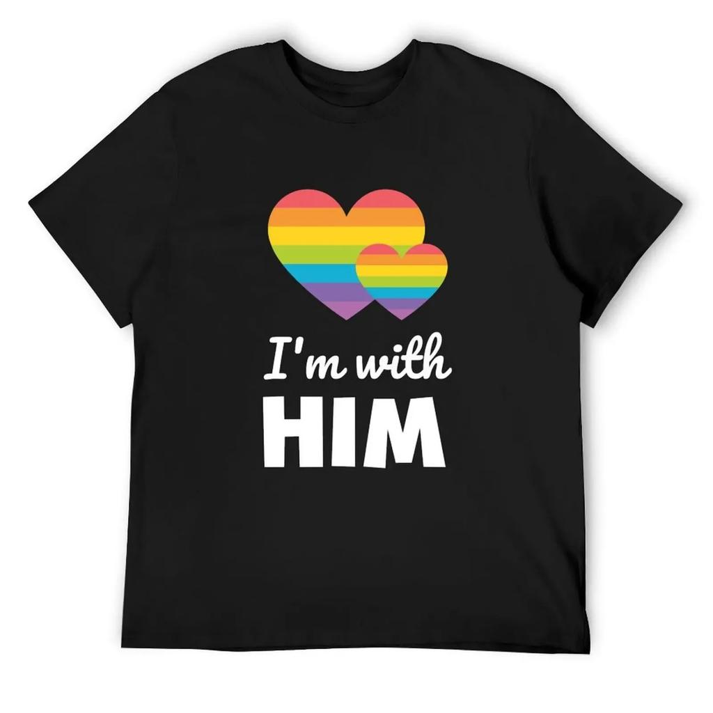 I'm With Him LGBTQ Rainbow Gay Couple T Shirt T-Shirt Anime Stuff Vintage Graphic Tee Cotton Graphic Tees Outfits for Men