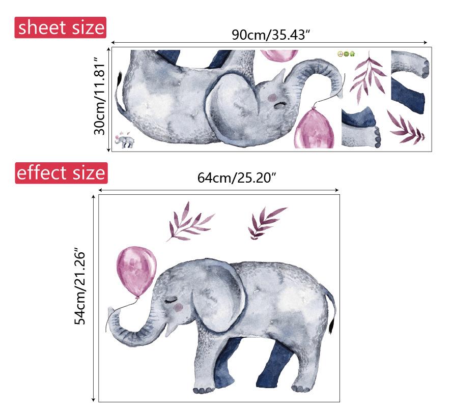 Hand Painted Elephant and Balloons PVC Wall Sticker for Bedroom Living Room Sofa Background Self-Adhesive Removable Wall Art