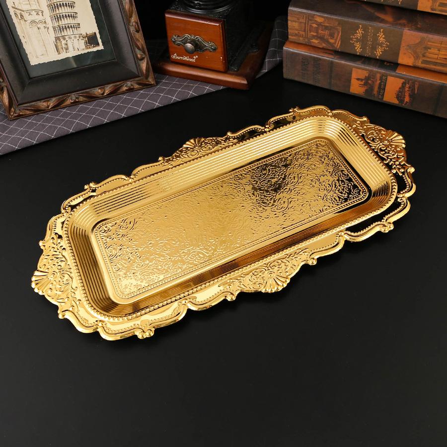 New European Lace Square Tray Gold Plated Tray Afternoon Tea Fruit Snack Cake Tray Steak Tray