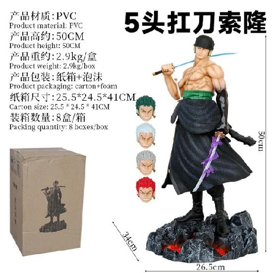 One Piece Anime Large 50cm Five-Headed Eagle Carrying Knife Domineering Zoro Collectible Statue Model Figure Ornament Gifts