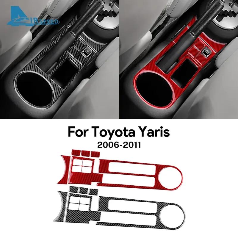 Real Soft Carbon Fiber Sticker LHD RHD Car Gear Handbrake Water Cup Accessories For Toyota Yaris 2006 2007 2008 2009 2010 2011