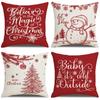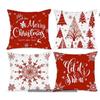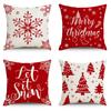 Set of 4 Trendy Christmas Pillow Covers 18x18 Red White Pillowcase Square Xmas Tree Snowflake Pattern Holiday Decor