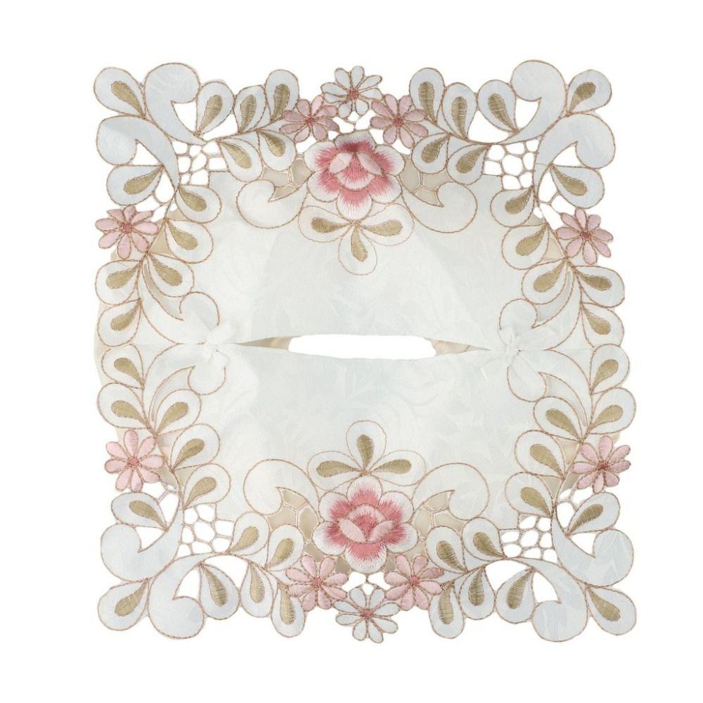 New Lace Fabric Tissue Box Cover Pastoral Style Embroidery Table Tableclot Vintage Hollow Table Runner Home Decor