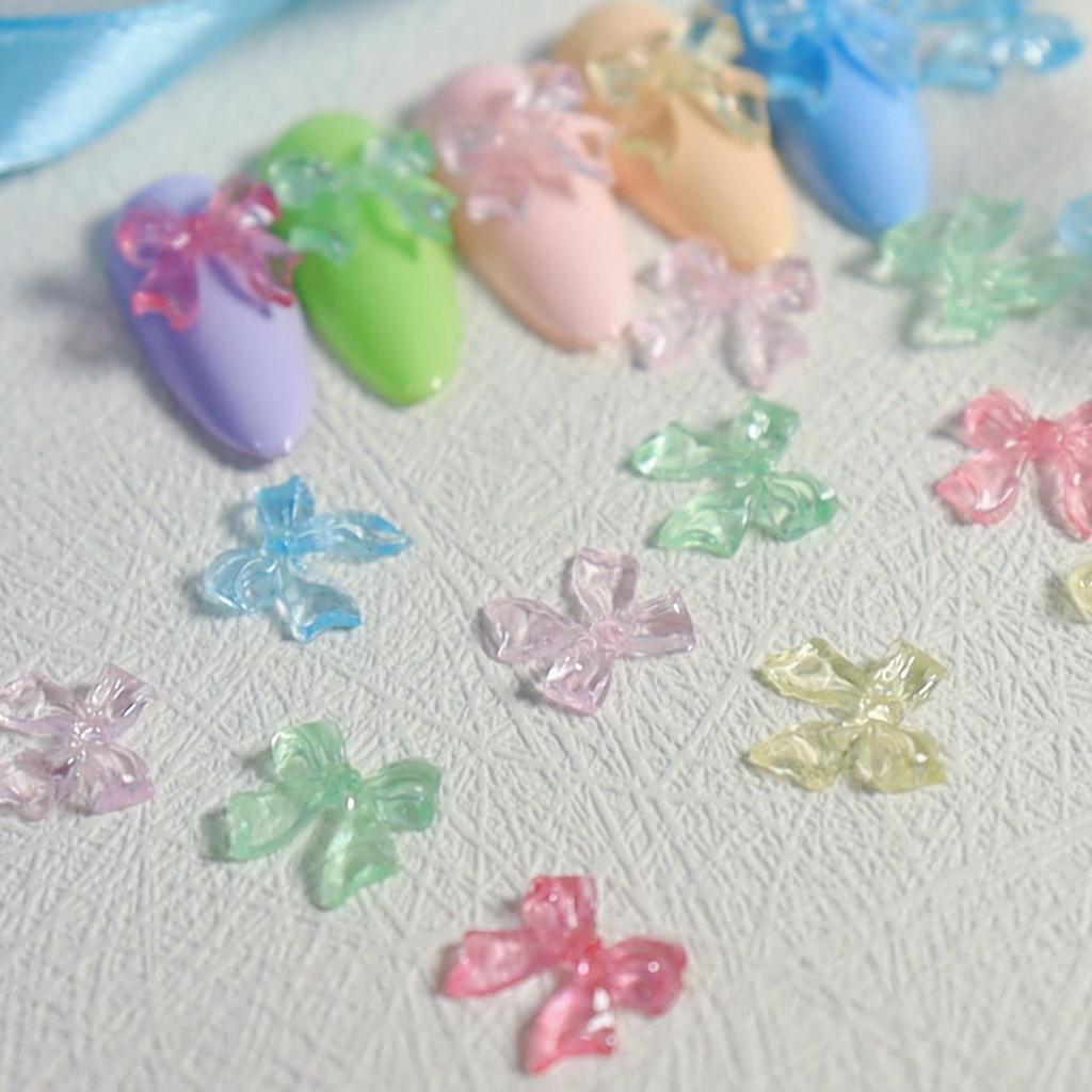50Pcs/Bag Candy Ribbon Bows 3D Nail Charm Transparent Jelly Color Summer Nail Decoration Accessories DIY Manicure Decor