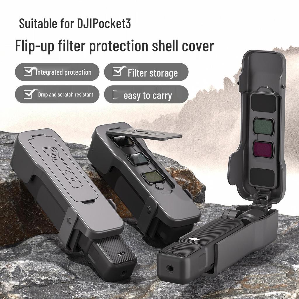 DJI Pocket 3 Protective Case with Magnetic Flip Cover and Screen Plate for Gimbal Camera and Filter Storage.