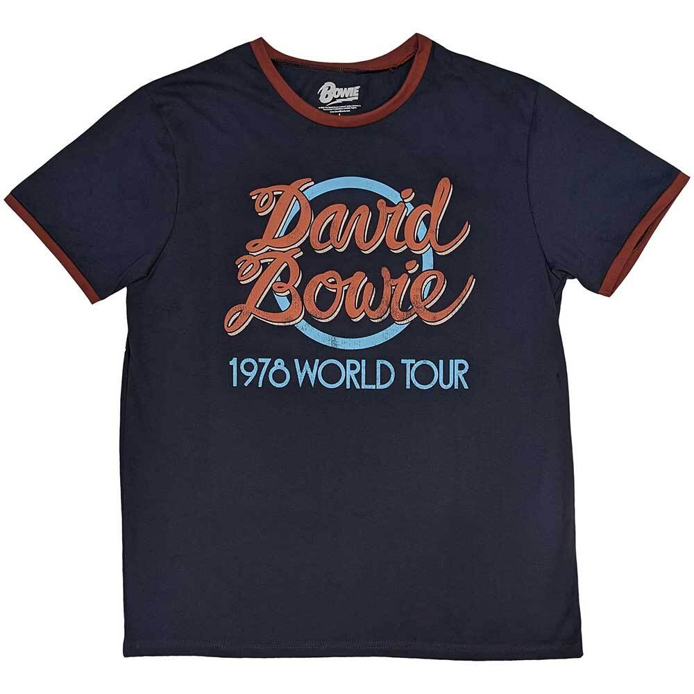 David Bowie '1978 World Tour' Navy Blue Ringer T Shirt - NEW Unisex T-Shirt