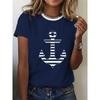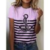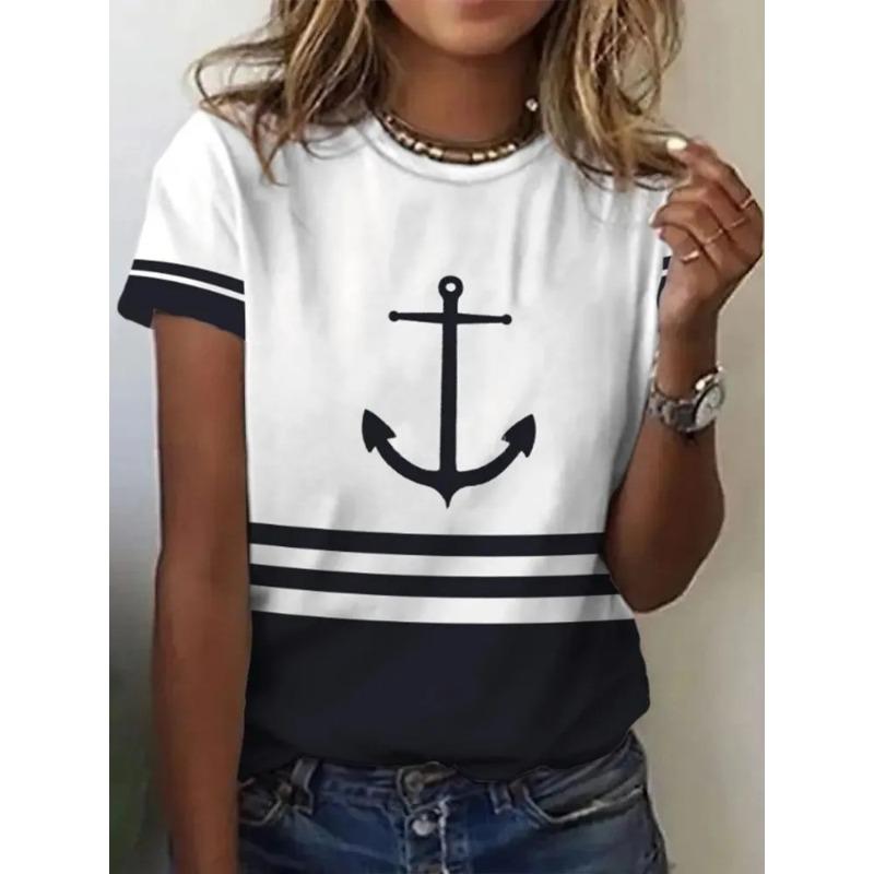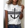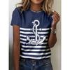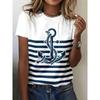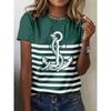 Women's 3D Printed T-Shirt Colorful Striped Boat Anchor Pattern Print Short Sleeve O-Neck Pullover Casual Top