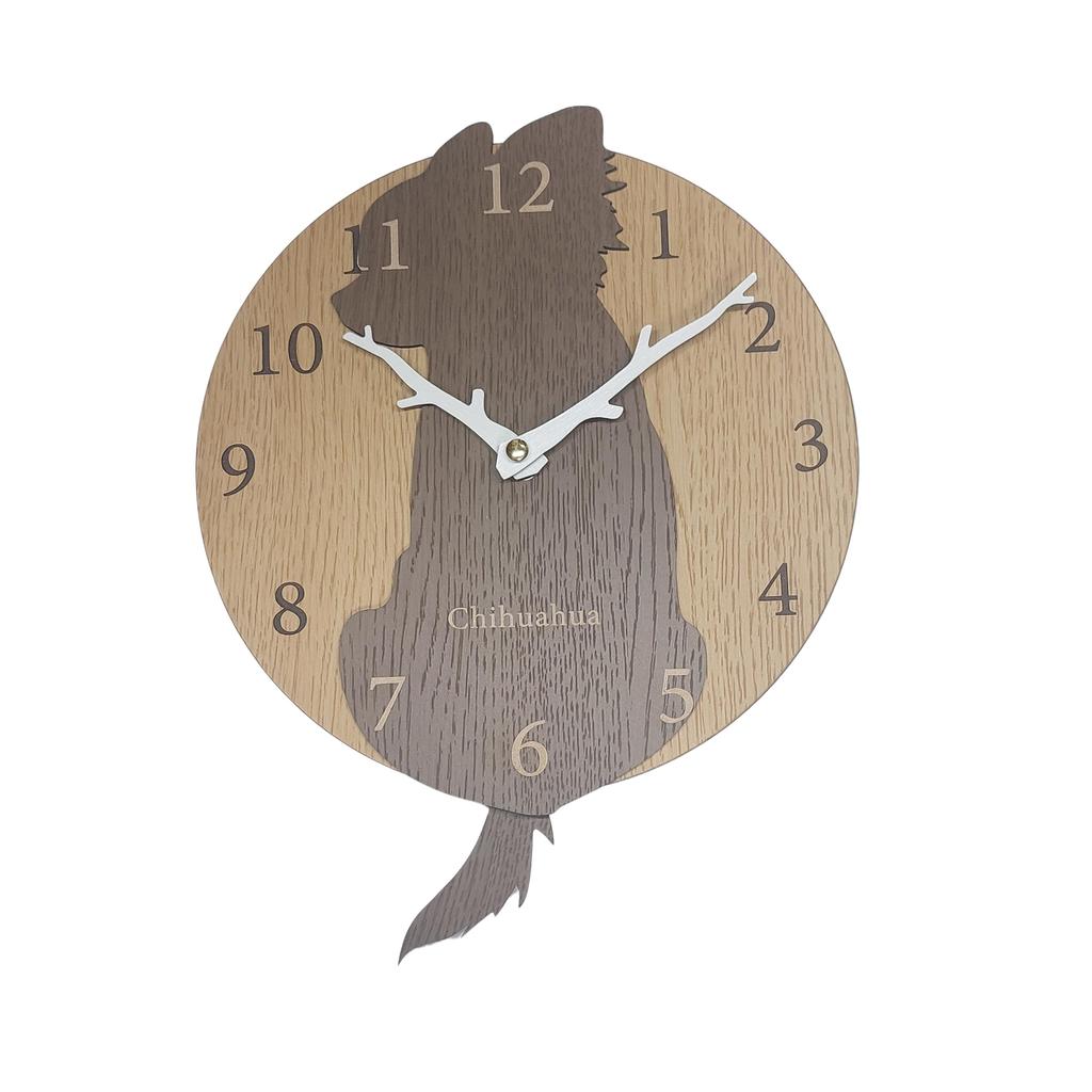 Stylish Wooden Pendulum Clock Featuring a Stray Dog, Featuring a Brown Chihuahua Dog. Silent, Perfect for Bedrooms, Homes, or Any Room.