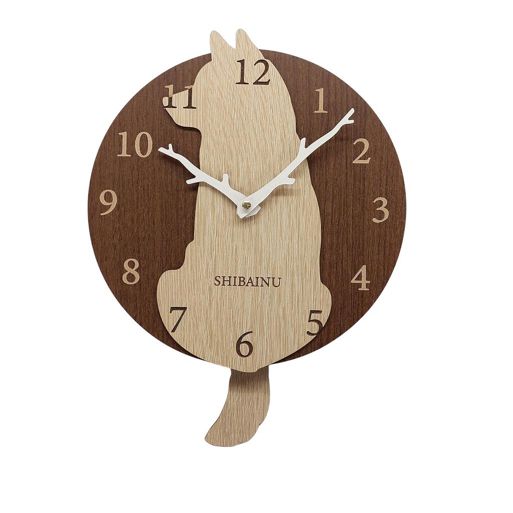 Shiba Inu Beige Wall Clock with Pendulum, Wooden Design, Quiet, Natural, Stylish, Dog Lover's Gift, Dog Motif, Nordic Style, Cute, Wagging Tail