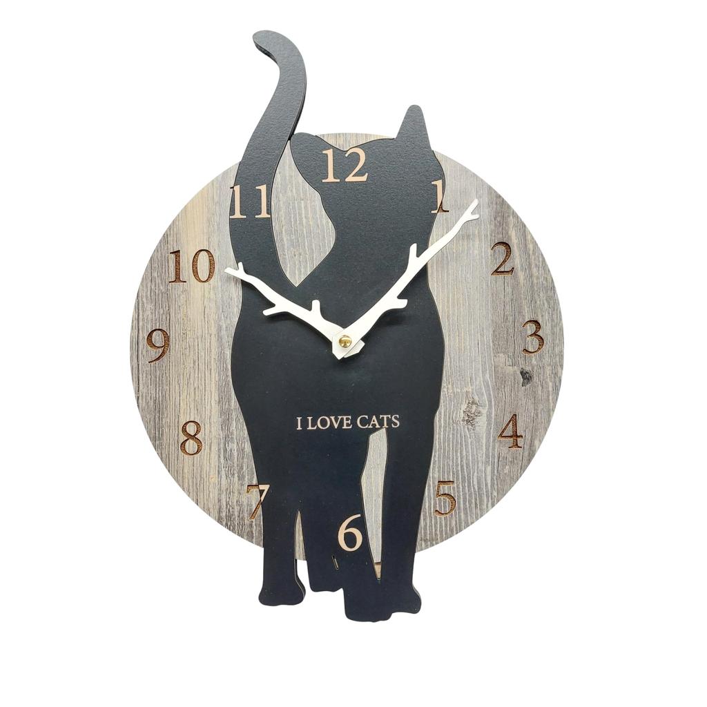 Stylish Cat Wall Clock, Cat 2, Vintage Wood Grain Analog Wall Clock, Silent Clock, Wall Decor, Bedroom, Home, Room Decor