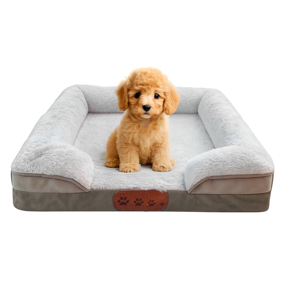 AoAkiSORA Pet Bed for Dogs and Cats, Washable, Memory Foam, Fluffy Brushed Cover, Removable Waterproof Liner, and Non-Slip Cover (Small, Gray)