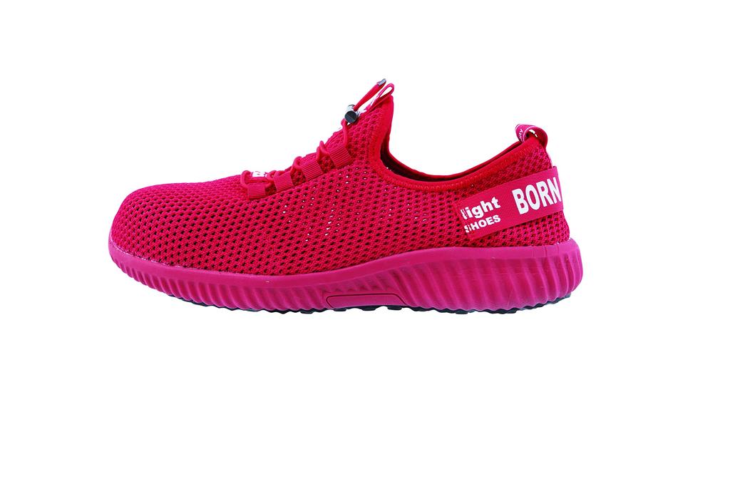 Xebec Safety Shoes, Work Shoes, 85412, Mesh, Breathable, Shock Absorbent, Lightweight, Slip-On, Anti-Sweat, Elastic Laces, Red, Size 23.0 Cm