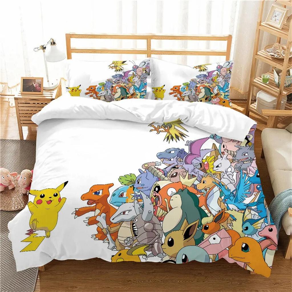 Pokemon 3D Pikachu Quilt Covers Anime Printed Bedding For Children Boys Girls Adults Kids Bedding Collection Holiday Gift
