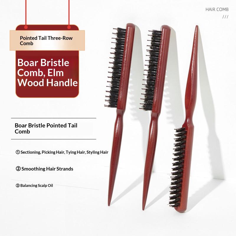 Wooden Handle Hair Comb Hairs Fluffy Three Rows Boar Bristle Combs Hairdressing Back Teasing Brushes Hairdressing Styling Tools
