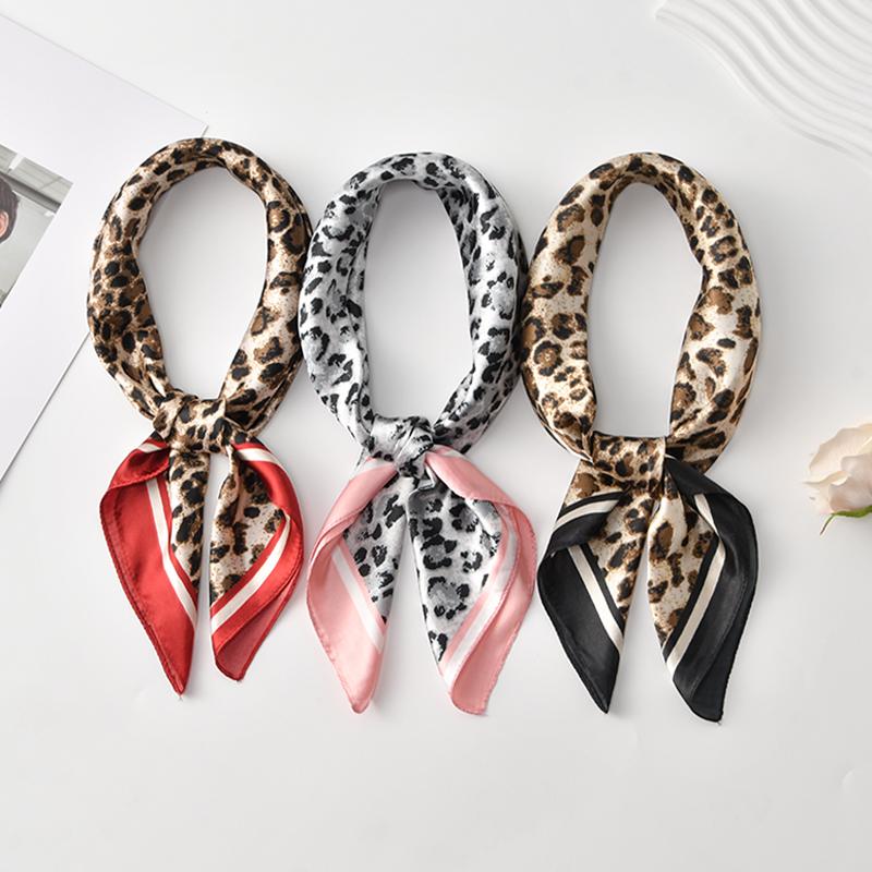 60Cm Leopard Print Kerchief Hair Scarf For Women Silk Satin Headband Hijab Scarfs Female Square Neck Scarves For Ladies