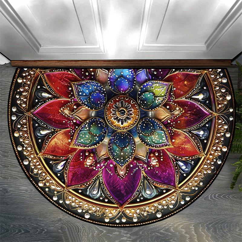 1Pcs Flower Pattern Semi Circle Welcome Doormat Non-Slip for Outdoor Patio Porch Kitchen Bathroom Entryway Floor Mat