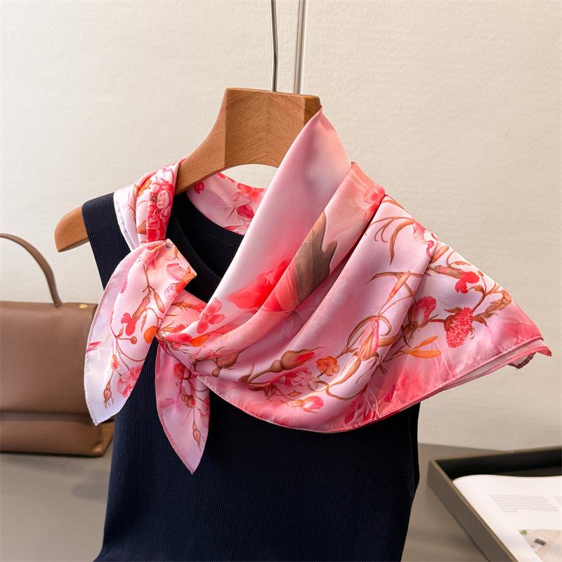 Floral Print Silk Square Scarf Women Neckerchief Female Foulard Headscarf Hijab Bandana Soft Hand Bag Ribbon Decorate Neck Ties