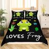Cartoon Frog Duvet Cover Collection Light Green Cartoon Frogs Cute Dragonfly Animal Bedding Collection For Kid Twin Size Polyester Quilt Cover